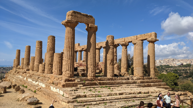 Heute bin ich noch weiter gegangen und zum Tal der Tempel bei Agrigent gewandert. Das einstige Akragas. Einst Gründung ausgewanderter Griechen, ist es heute eines der bedeutendsten Überbleibsel ihrer Bautätigkeit auf der Insel. Einige Tempel haben die Jahrtausende fast unbeschadet überlebt, will sie als Kirchen recycelt wurden.