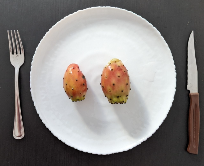 Der Feigenkaktus wächst in Süditalien wie Unkraut und lockt mit schönen aber stacheligen Früchten. Auch hier hilft dem ahnungslosen das Netz. Ernten kann man sie bewehrt mit einer die Hand schützenden Plastiktüte. Die Enden abschneiden, mit Gabel festhalten und längs schneiden und schälen. So kommt man an den leckeren Vitamin-C-Schub im Inneren.