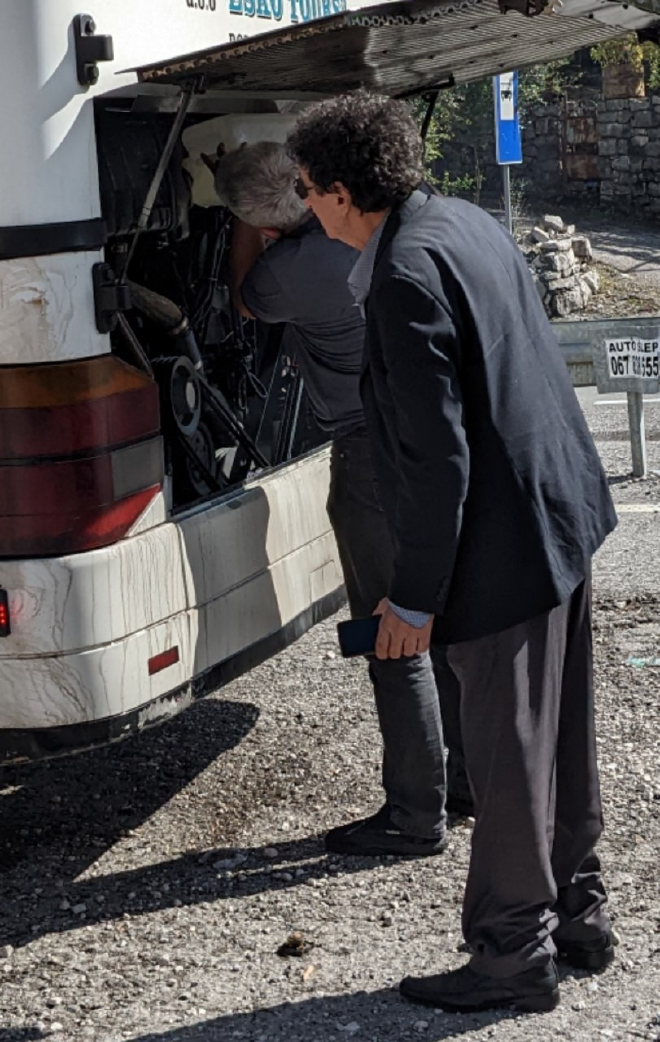 Manchmal folgt eine kleine Strafe auf den Fuß und der Busfahrer muss unterwegs Wasser nachkippen. Der Motor dampfte.