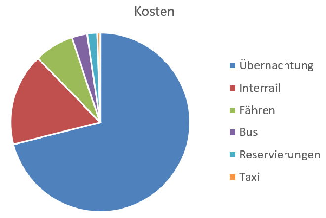 Nach dem interrail-Ticket ist das drittgrößte Kuchenstück das Fähre fahren. Aber es ist auch einfach schön und bei der gewählten Route unvermeidlich.